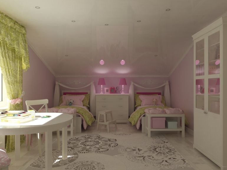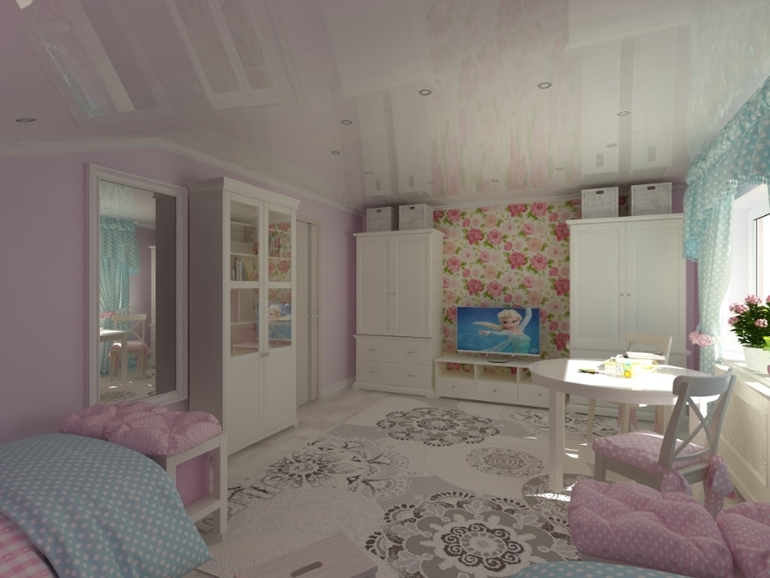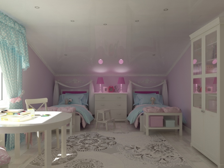 Визуализация детской в мансарде.