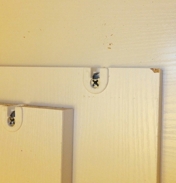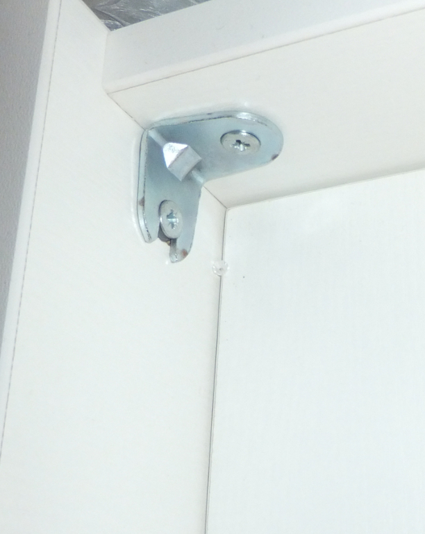 пластиковый уголок у нас был один, потом в магазине докупали ещё 7 и таким образом шкаф дополнительно скрепили 8 уголками, - и, о чудо, шкаф больше не перекашивало, дверцы по высоте стали на одном уровне и мы благополучно его передвинули, ура!