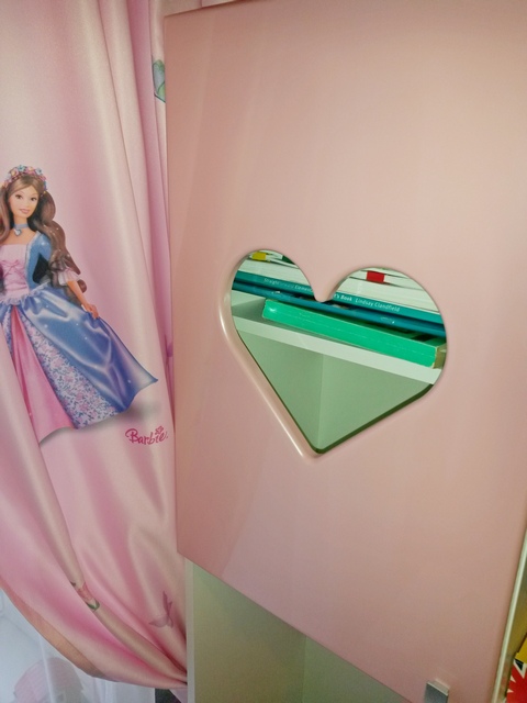 Сразу отмечу, что фото из каталога гораздо приятнее и ярче, реальный же цвет мебели: грязновато-розовый и бледный, - что сразу вас разочарует. Сердечки на мебели - это что-то вроде силиконовых наклеек объёмных, приклеены хорошо, не отлетят. Цвет мебели примерно такой: