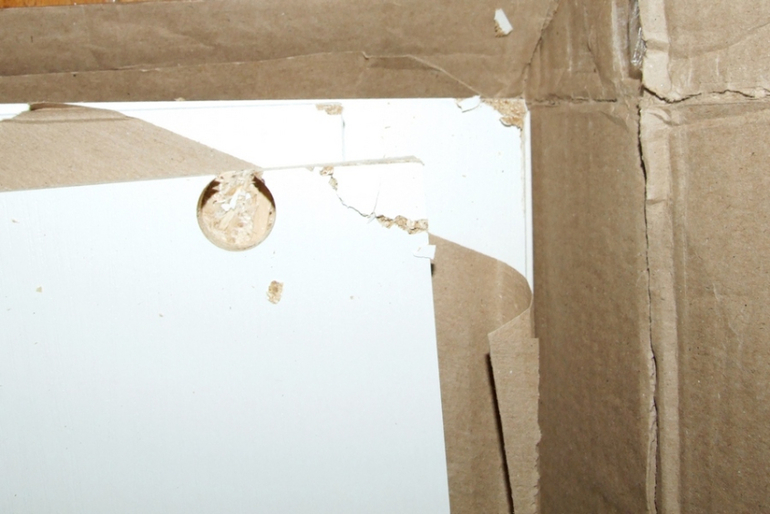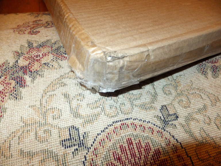 Мебель привезли в картонных коробках: коробки порванные, потёртые, углы с дырками.