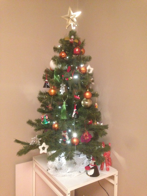наша ёлочка в этом новом году. Еще не закончила украшать, буду добавлять бусы.