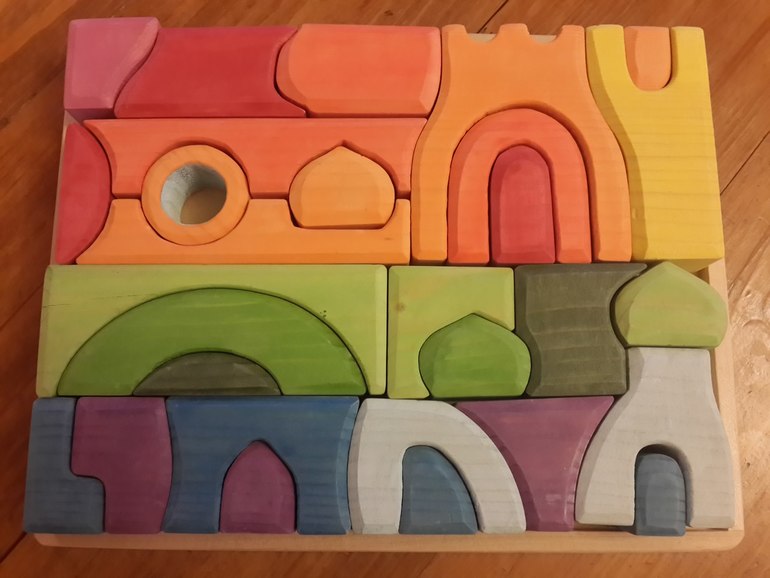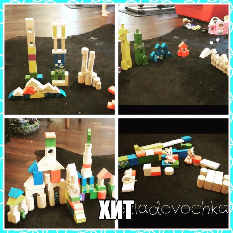 Строительные наборы - очень любим. Делаем и произвольные постройки, строим дома по цвету, по форме, домики с мебелью для фигурок