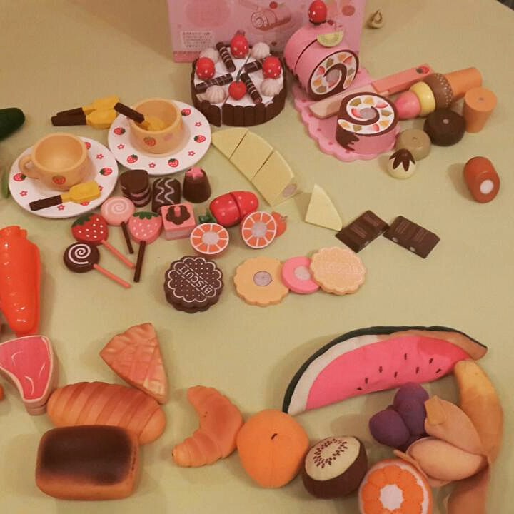 Мягкие фрукты это Икея, торт фирма Солнышко, очень классный набор на заднем плане фирма Mother Garden с алиэкспресс