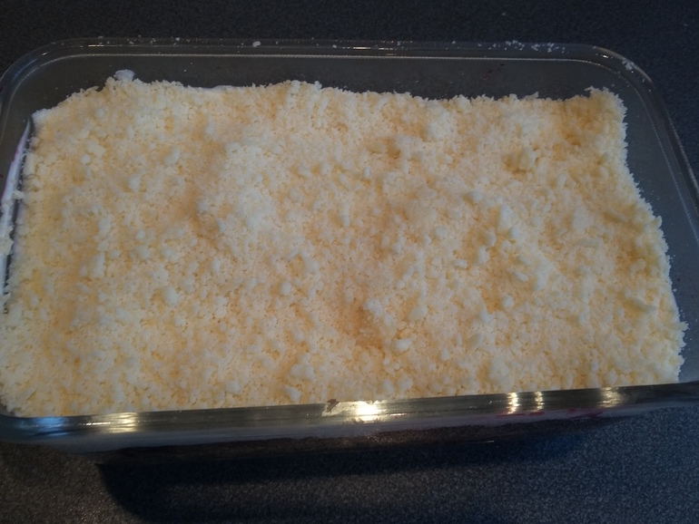 Слой мелко натертого острого сыра (Гой, Мааздам, Пармезан):