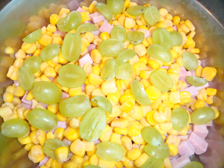 И половинки зеленого винограда:
