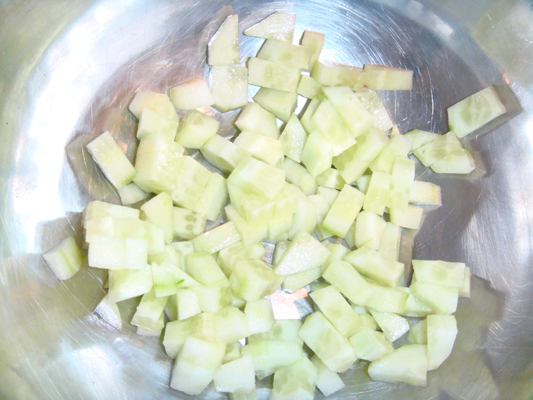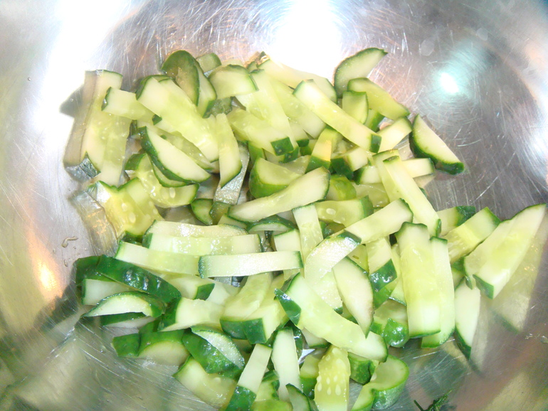 Нарезать свежий огурец брусочками: