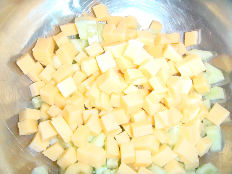 Добавить кубики твердого сыра: