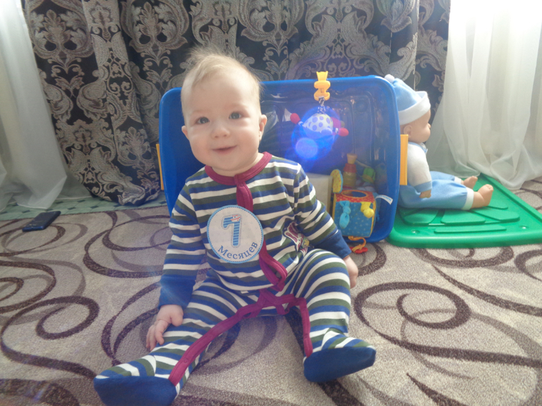 Вот и стукнуло на 7 месяцев, время летит - не остановить.... Вес у нас 8700(прибавка 0)
