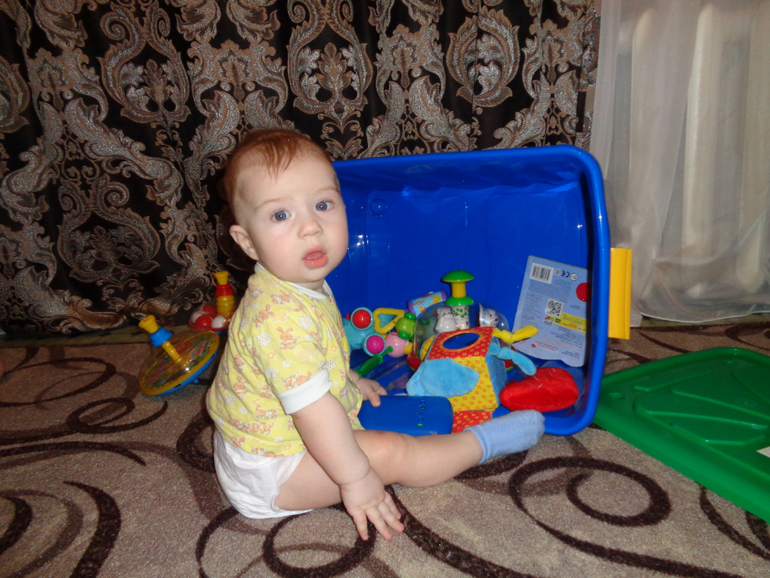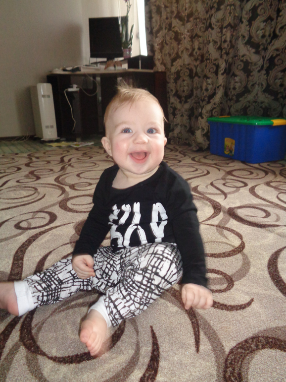 По-прежнему 2 зуба(нижние). Все делаем, сидим -стоим -ползаем, ходит у опоры, отпускать руки даже не пытается, разве что одну. Любимое занятие - сидеть на корточках)))