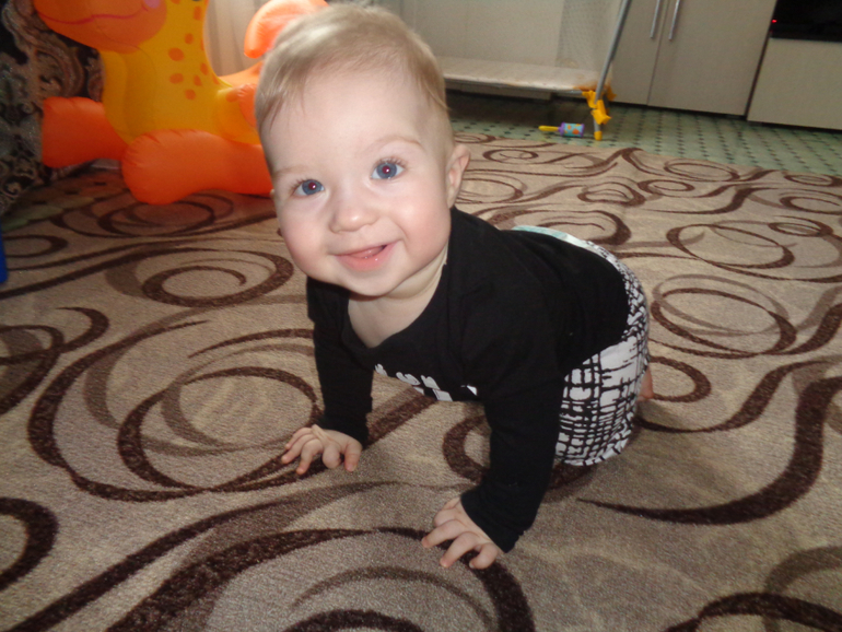 Играем в ладушки, умеем давать"пять", ну и супердостижение это слово"мама", правда когда ему что то надо) сфотографировать моего шилопопа самая большая проблема.