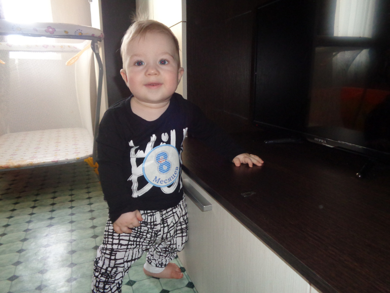 Страшное время настало для меня как для мамы. Встаем у опоры везде и всюду. Верит в себя и отпускает руки, и падает....1 раз не успела поймать . губу острыми зубками прикусил.... ужас