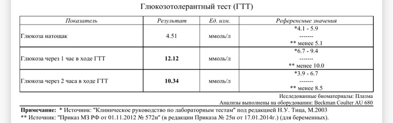 Девочки, привет. Срок 25 недель, сдала глюкозотолерантный тест. Результат ниже. Превышения через час и два часа после приема глюкозы((Чем грозит и чего ждать?