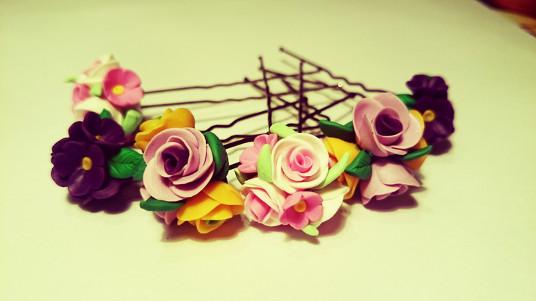 И в один прекрасный день, в художественном магазине я наткнулась на цветные брусочки из полимерной глины. А почему бы и нет, подумала я и купила пробный набор. Оказалось, очень занимательное занятие! И первое, что я пыталась сотворить, конечно же, цветочки. Это моя первая работа.
