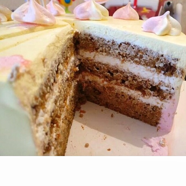 Внутри Морковный торт - коржи с добавлением пряностей и моркови, которая лишь придаёт им сочность, но абсолютно не чувствуется во вкусе, с добавлением карамелизированных грецких орехов и творожно-сырный крем (крем чиз) Вес 2кг