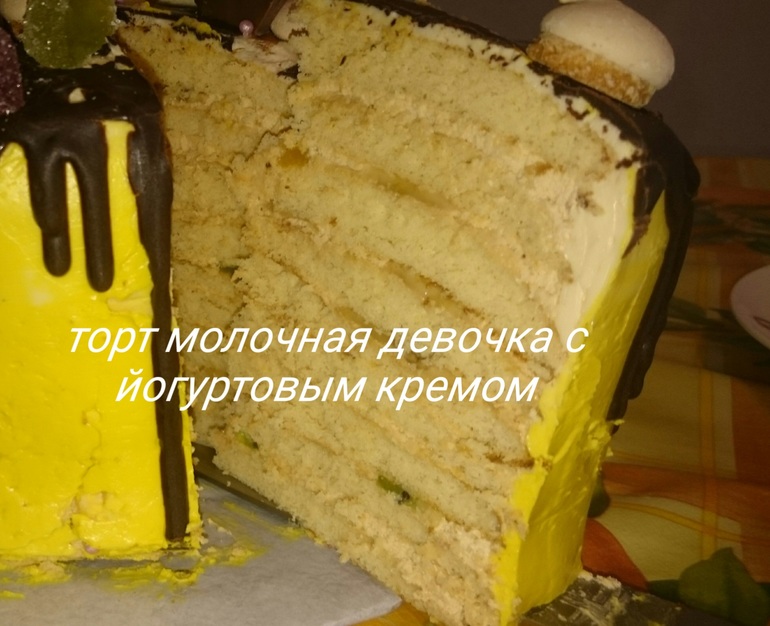 Торты на заказ Одинцово (Армине) → Новенькая Спам Мама двоих (14 лет, 10 лет) Одинцово Молочная девочка с йогуртовым кремом и фруктами (персик и банан)