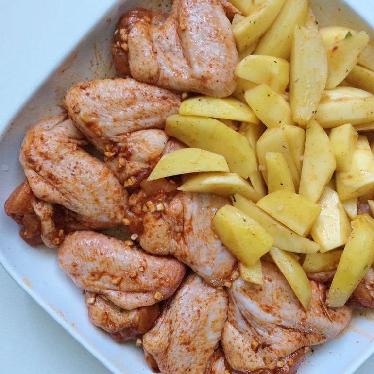 Достаем из холодильника крылья. Им тоже достается паприки, соли и перца. А еще чеснока.