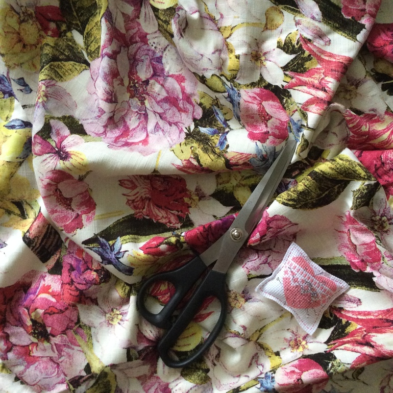 Ткань очень приятная, а в принт я влюбилась с первого взгляда. В магазине еще много подобных, невероятная красота. Жаль мне уже некуда летние наряды вешать, а то бы шила еще и шила))
