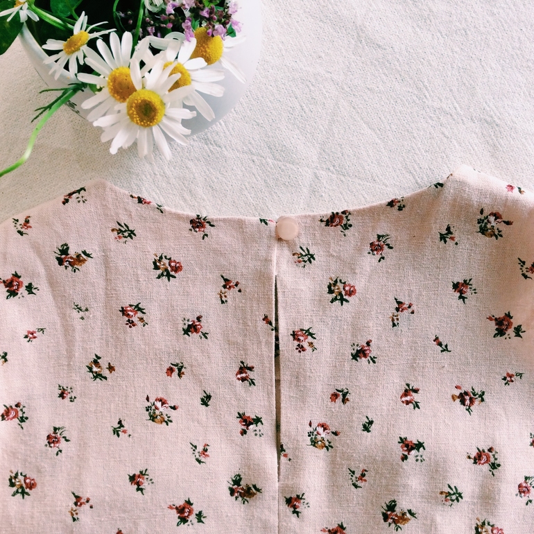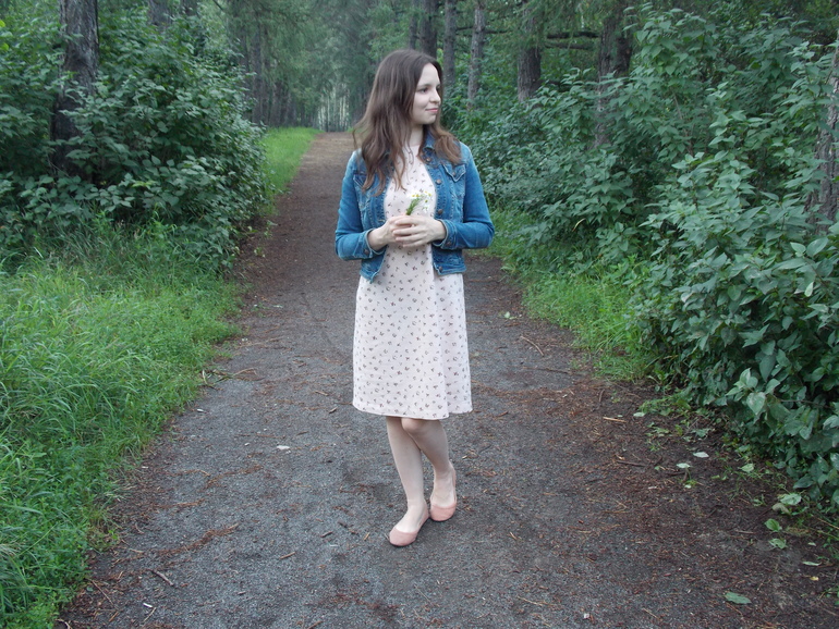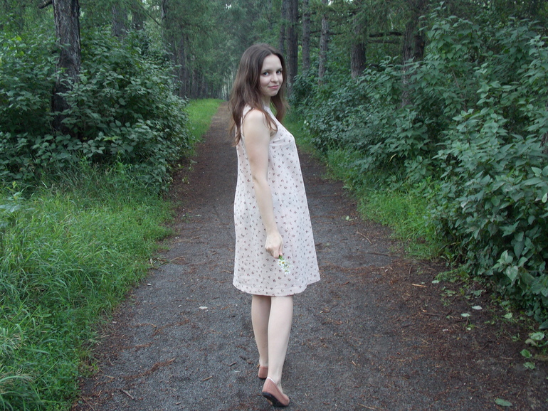 Грубоватый лен в мелкий цветочек, простой крой. Мне кажется, оно похоже на ночнушку))