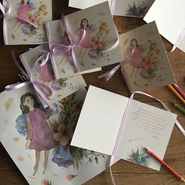 Такие мимишные пригласительные получились для дочкиного праздника. Мой оригинал, как всегда, ей в комнату, в красивую рамку. Остальные завтра в школу отнесёт, гостям. Она очень ждёт каждый раз, что именно я ей нарисую, так что это сюрприз для неё.