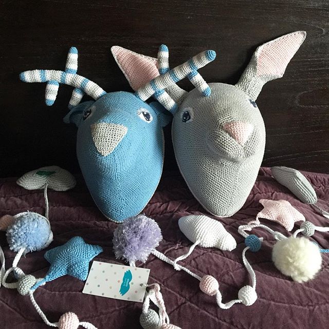 Задумчивые дружочки. Настенное украшение для детской из хлопковой пряжи и подходящая гирлянда. Все можно стирать в машине.