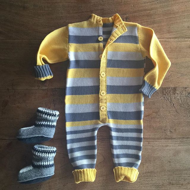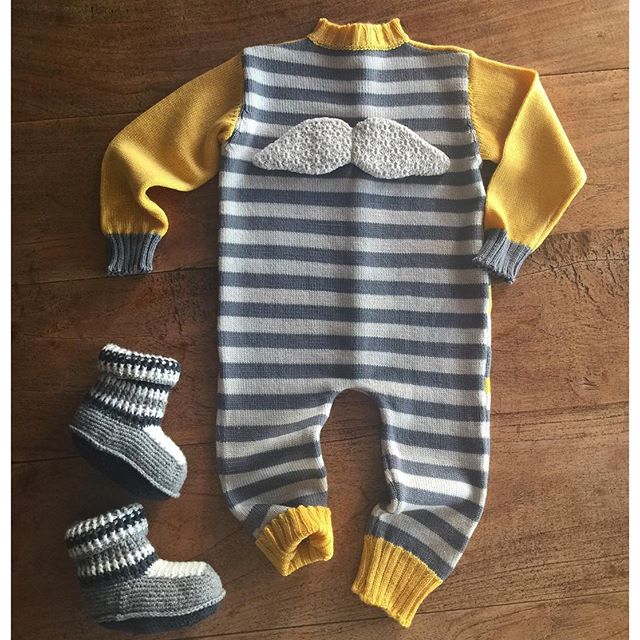 Навязали комбинезонов. Это вид сзади. Чудесные полосатики с крылышками на спине. Застежка на планке на пуговках. Полотно очень тонкое, как раз на лето-весну. Перед тоже полосатый, но полоски совсем другие. На сайте ещё нет, но скоро появится.