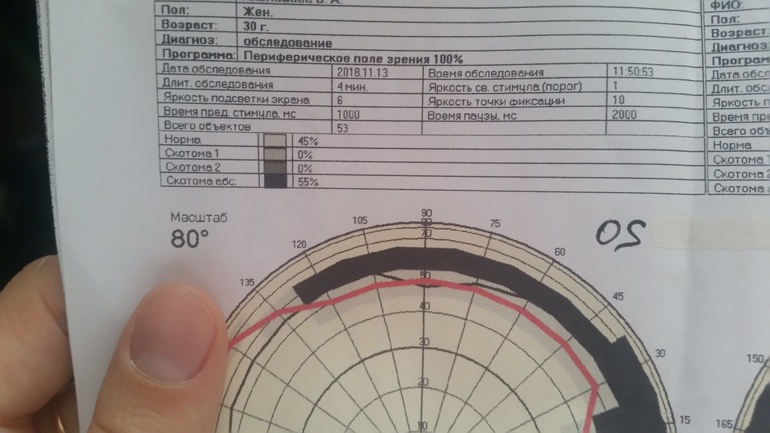 Поля зрения проверяют, но я так и не поняла, какие там показатели...могу разве что, результат обследования скинуть...