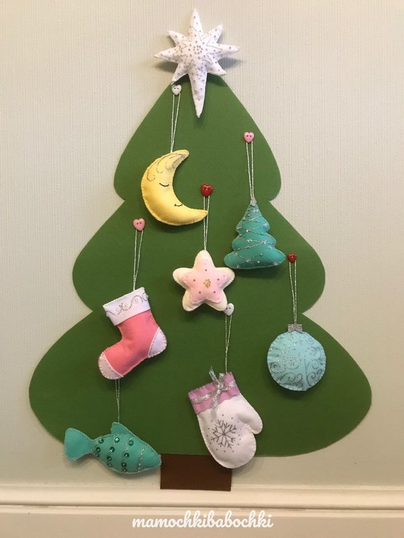 Как и обещала выставляю детскую елочку! Все сделано в ручную, все прошито вручную.