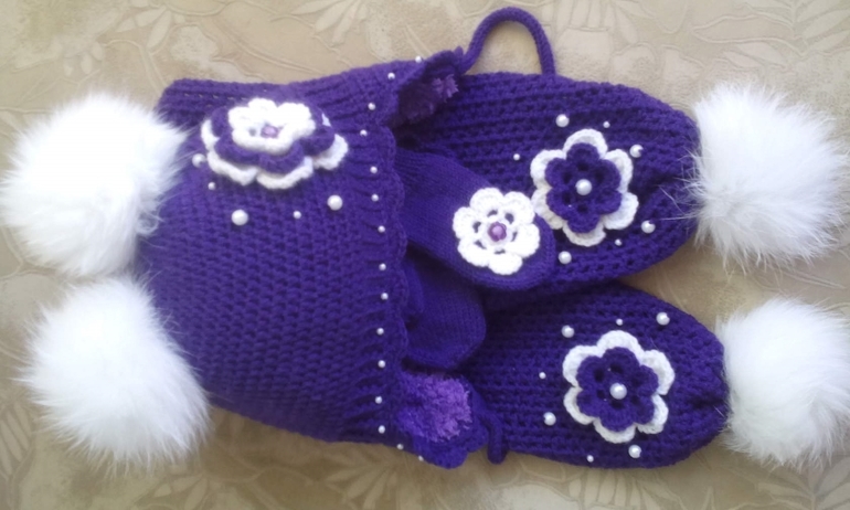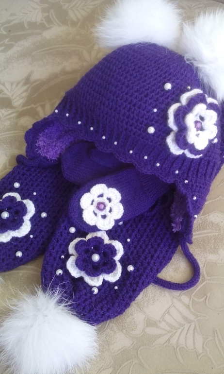 Связался комплект для малышки. Пряжа, правда, оказалась темнее, чем предполагалось изначально. Надеюсь, хозяйка не обидится.