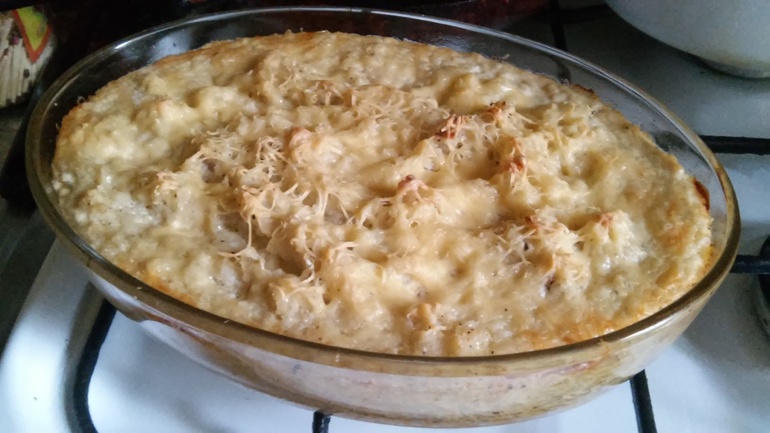 3. Посыпать оставшимся сыром и запекать в духовке при 180°C до золотистого цвета.