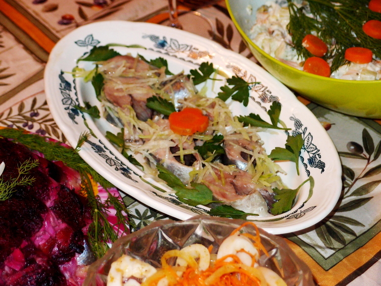 1 тушка селедки пряного посола. Рецепт здесь, только вместо скумбрии в этот раз я взяла селедку.