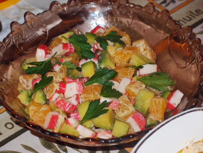 7. Салат с крабовыми палочками, авокадо и мандаринами