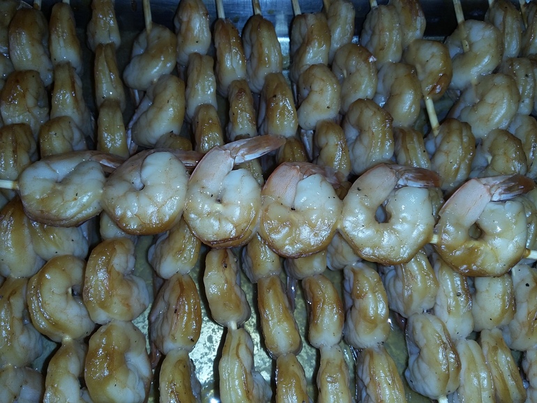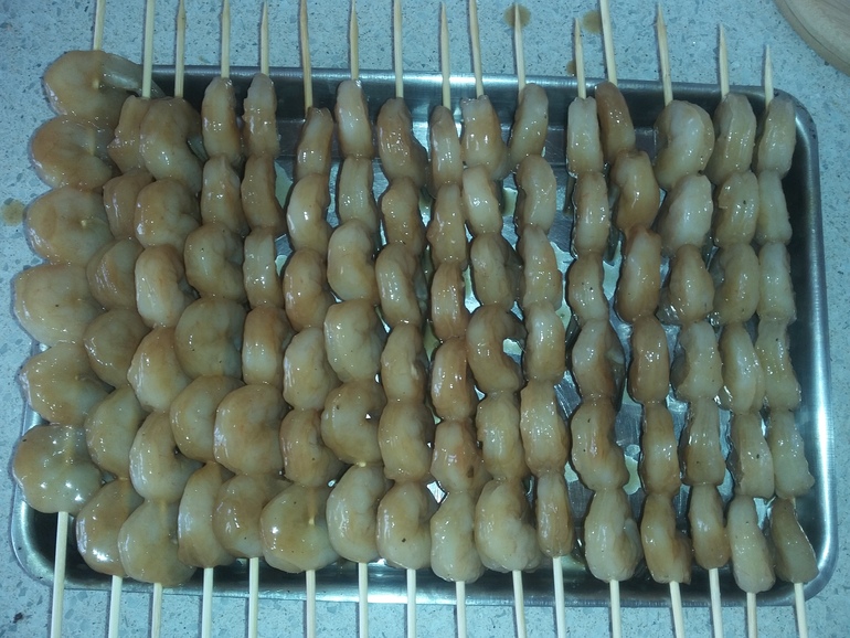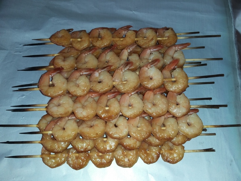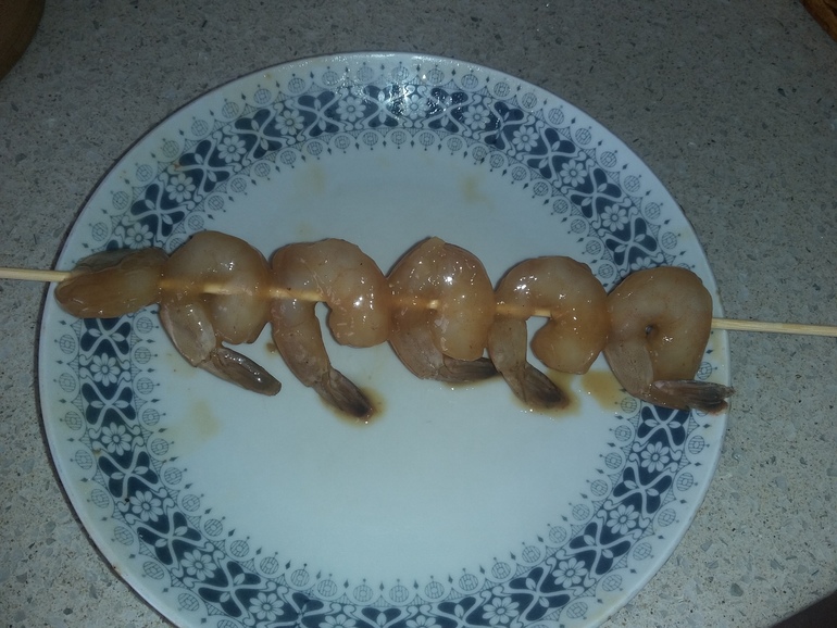 Разморозить, слить воду. Перемешать с соусом якитори и соевым соусом (2 ст.л.). Оставить на пару часов в холодильнике.