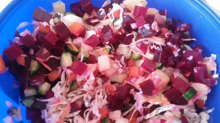 Свежепросоленные огурцы, помидоры с чесноком и сыром, рулетики из кабачка с корейской морковкой уже показывала. Винегрет с селедкой все умеют делать: