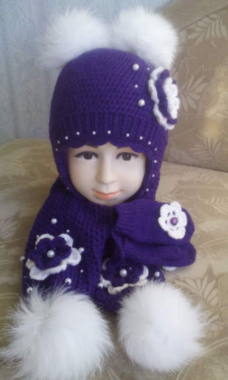 Связался комплект для малышки. Пряжа, правда, оказалась темнее, чем предполагалось изначально. Надеюсь, хозяйка не обидится.