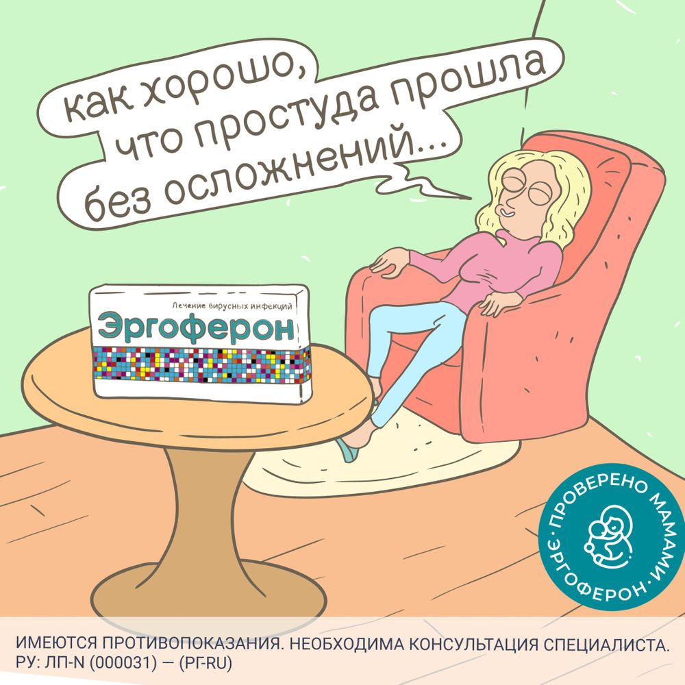 И мы на майские праздники простудились. Погода такая дождливая и холодная. Пропейте чая с лимоном и медом, горло с содой прополоскайте и мне всегда помогает Эргоферон. Картинка с их сайта прям в точку