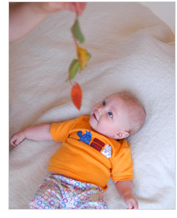 Вариант игры: Попробуйте эту игру на свежем воздухе. Поставьте коляску малыша рядом с подходящим деревом или кустом и прикрепите веревочку к крепкой ветке так, чтобы игрушка качалась и малыш мог до нее дотянуться и потрогать.