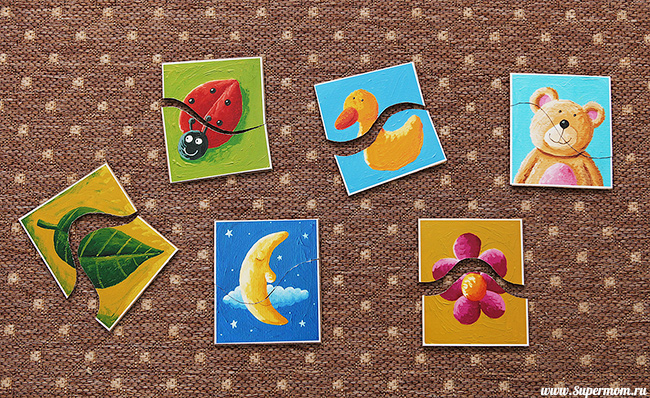 Я хотела наглядно объяснить Алисе понятие одинаковых предметов и парных предметов. Получилось две игры: первая, где надо найти и разместить на поле предмет, изображенный на карточке, и вторая - по принципу пазла.