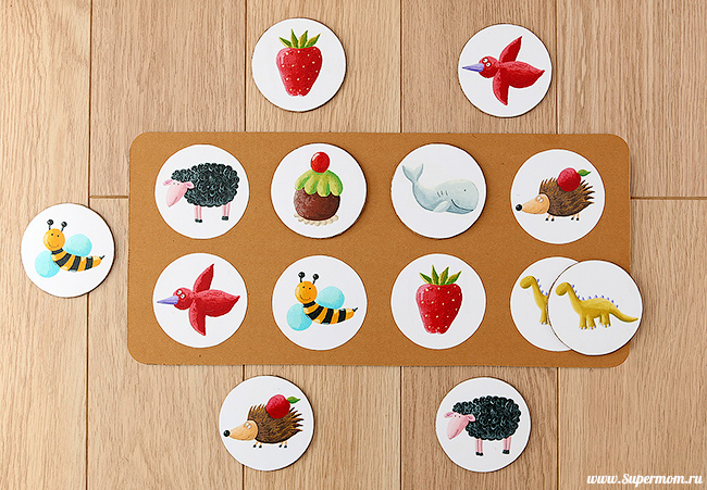 На самом деле, я создала эту игру, но совершенно не подумала о том, насколько более сложные задачи она решает в повседневных играх: проводит параллели между, скажем, изуродованным художником животным и животным, изображенным с правильными пропорциями и правильным цветом. Так что, что касается обучающей функции, то тут для нас поезд уже ушел, хотя мне и удалось наглядно объяснить, что значит "одинаковые", да и играть было интересно, хотя и легко. Ну и конечно, большой педагогический плюс оказался в том, что она смогла быстро понять правила и логику этой игры. А это уже много.