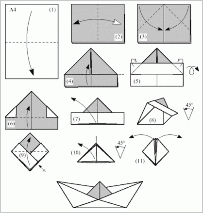 Кстати, если кто забыл, бумажные кораблики складываются так: