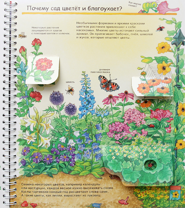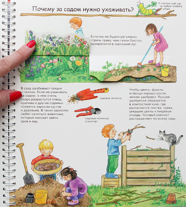А вот необыкновенно красочная энциклопедия с клапанами "Наш сад" из серии "Зачем? Отчего? Почему?".