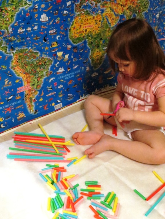 Все очень быстро и просто. Брала пособие на занятие в студию раннего развития. Все дети от 2-х до 4-х лет с увлечением складывали палочки. Так что советую.