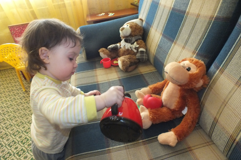 После плотного завтрака разобрали мишек по размеру и каждому Яся вручила по балалайке)