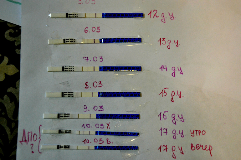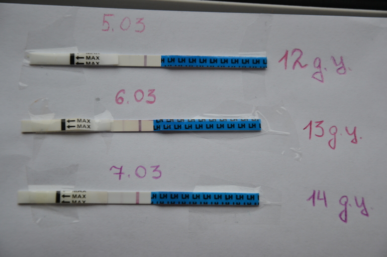 Здравствуйте, девоньки!) Планируем второго малыша. Пробую подгадать овуляцию. По календарю и подсчетам выходит овуля на 10 марта. 5 марта ( на 12 д.ц) начала делать тестики. И вот сегодня сделала третий и немного расстроилась(( Вчера такая яркая была, а сегодня гораздо светлее вчерашней, хотя ведь полоска должна была ярчать(( что это такое, подскажите!