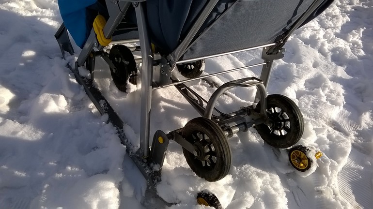 - на полозьях катить одно удовольствие, буквально сами едут. Даже по миллиметровому снежку летит как по маслу. А самое главное, это настоящий вездеход: на полозьях проедет везде, где есть снег;
