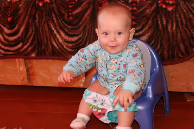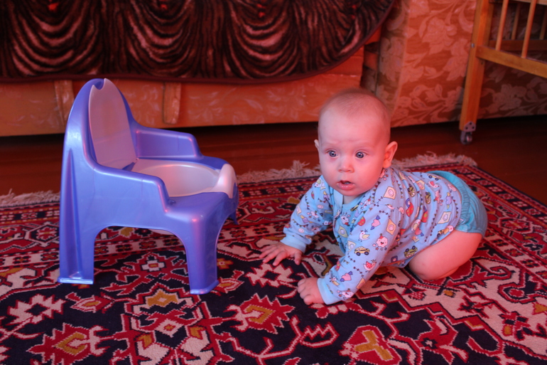 В нашей жизни появился настоящий горшок. Я очень рано начала Егорку высаживать, поэтому слова "пойдем пописаем", "пись-пись" и "а-а" понимает прекрасно. Вот на горшке сидеть пока не очень понятно и удобно для него, приходится сначала над горшком держать и потихонечку опускать на него, уже есть первые успехи.
