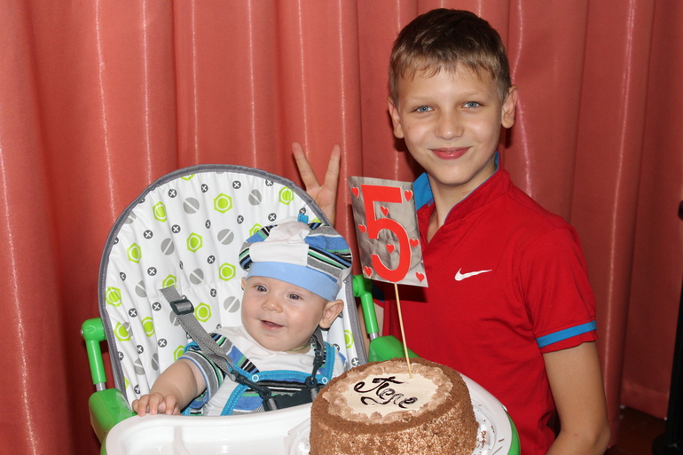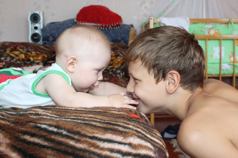Очень любит маму, папу, бабушек, но особенно братика Димульку. Это взаимная любовь. Дима с большим удовольствием проводит время с Егоркой, тем самым у мамы есть возможность позаниматься домашними делами.
