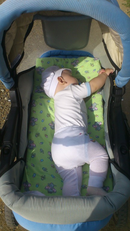 Отдельно хочу сказать о наших прогулках. Гуляем только лежа на животе.
