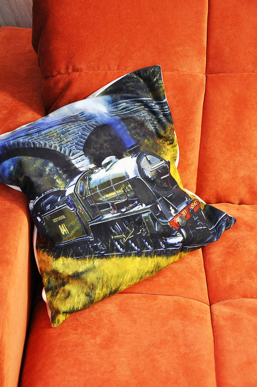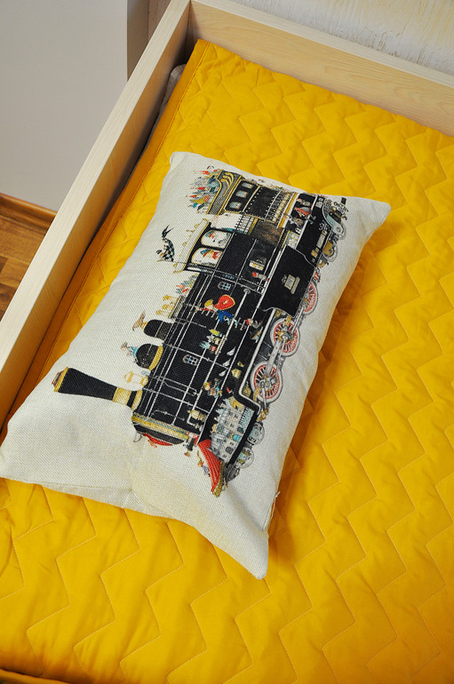 Из-за декоративной штукатурки, которая имеет рельеф, мы отказались от больших наклеек на стену с поездами-паровозами. Но так как человек любит железную дорогу, как-то надо было выкручиваться. Выкрутилась так: