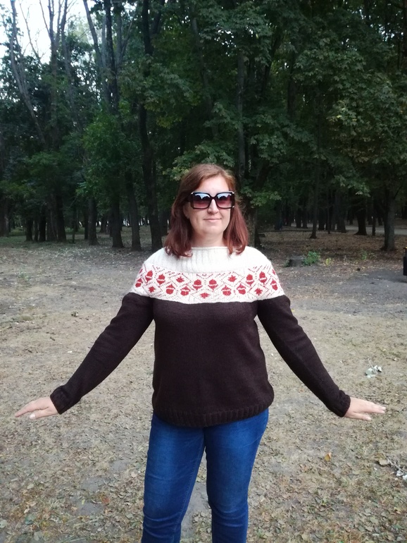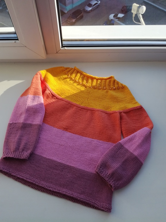 вообще я связала два свитера, детский и взрослый. Ну мне просто было страшно сразу большой вязать. И не зря, как оказалось, со взрослым были проблемы.