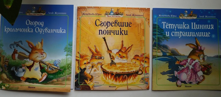 Поскольку книга библиотечная, мы купили личный экземпляр. И в довесок еще две сказочные история крольечего семейства.
